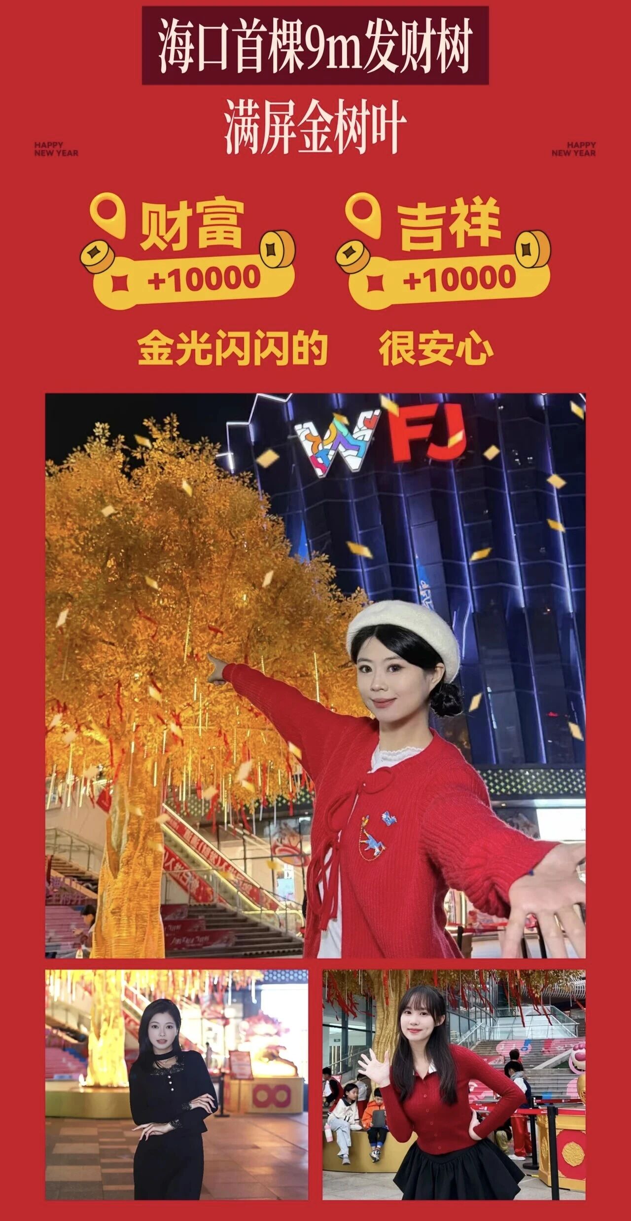 海口王府井海垦广场为广大市民游客准备了一场别开生面的“财神爷马上来!”主题跨年活动,邀请全城共赴一场财运与欢乐交织的新年之约。本次跨年活动的亮点是新年打卡地标——海口首棵9米高的“黄金发财树”,海垦广场还将举办高颜值财神天团巡游送福的Live Horse跨年派对和汇聚文创手作与特色美食的“快乐加马”市集,非遗鱼灯展、财神殿兑春联、亚洲杯乒乓赛事直播等系列节日庆祝活动也将接力上演,持续烘托佳节氛围。
