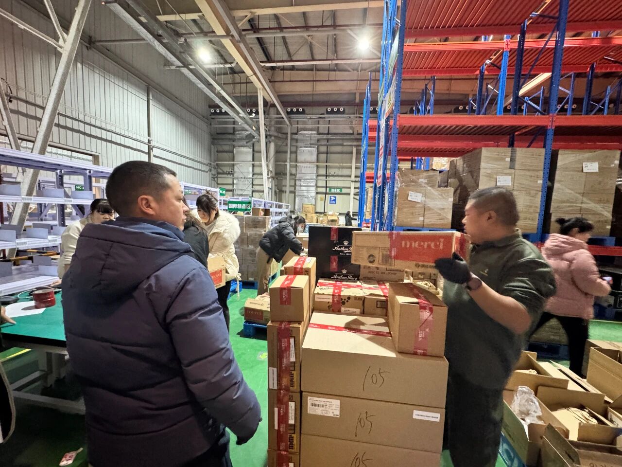 货物保障环节是一次对跨国供应链的挑战。数千个SKU需从与品牌的商务洽谈、合同签订、选品、下单采购,到完成全新系统信息录入、报关备案与跨国物流调度,团队7x24小时不间断工作,与全球品牌方、货运代理、海关部门保持无缝沟通。在物业交付后的极短窗口期,免税公司运营、招采、销售团队等全员投入“开荒式”作业,在场地内昼夜不休,完成数万件商品的验收、贴标、上架与陈列,确保所有商品以最佳状态准时亮相。
