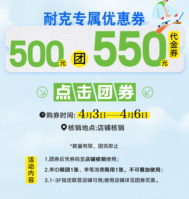 超级运动惠~银川市政府消费券满500减100、金凤区政府消费券满500减50、耐克低至5.5折!