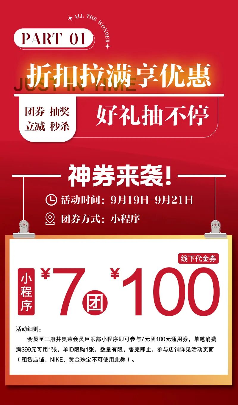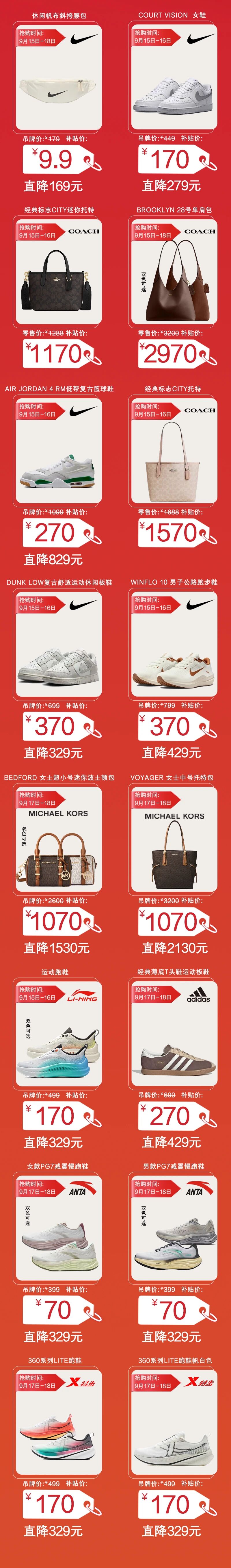 9月19日开始,双店同庆!7元团100代金券!满999抽黄金!9.9抢耐克、COACH、MK等大牌直降2000+等你来秒杀