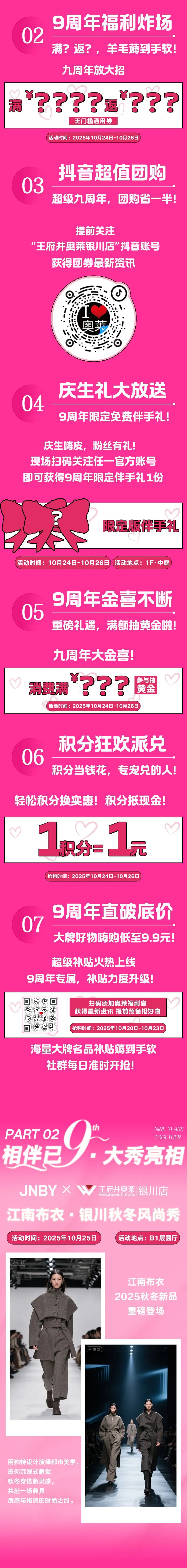 重磅来袭!9周年店庆→满千返百、50团100、满999抽黄金、积分限时抵现、补贴升级大牌低至9.9!时尚大秀、音乐节等你来打卡
