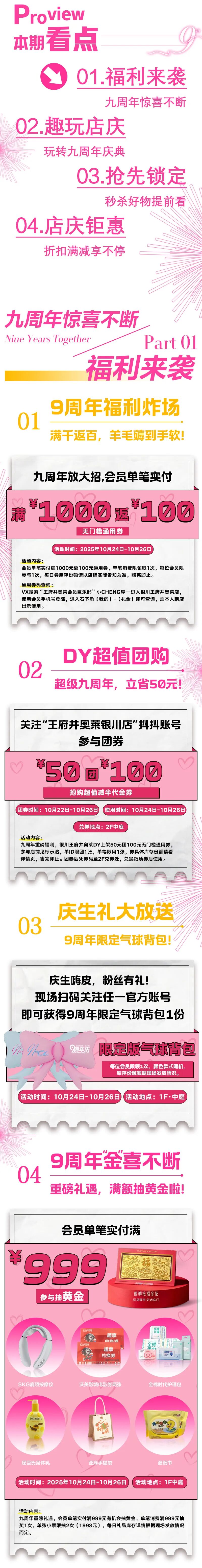 重磅来袭!9周年店庆→满千返百、50团100、满999抽黄金、积分限时抵现、补贴升级大牌低至9.9!时尚大秀、音乐节等你来打卡